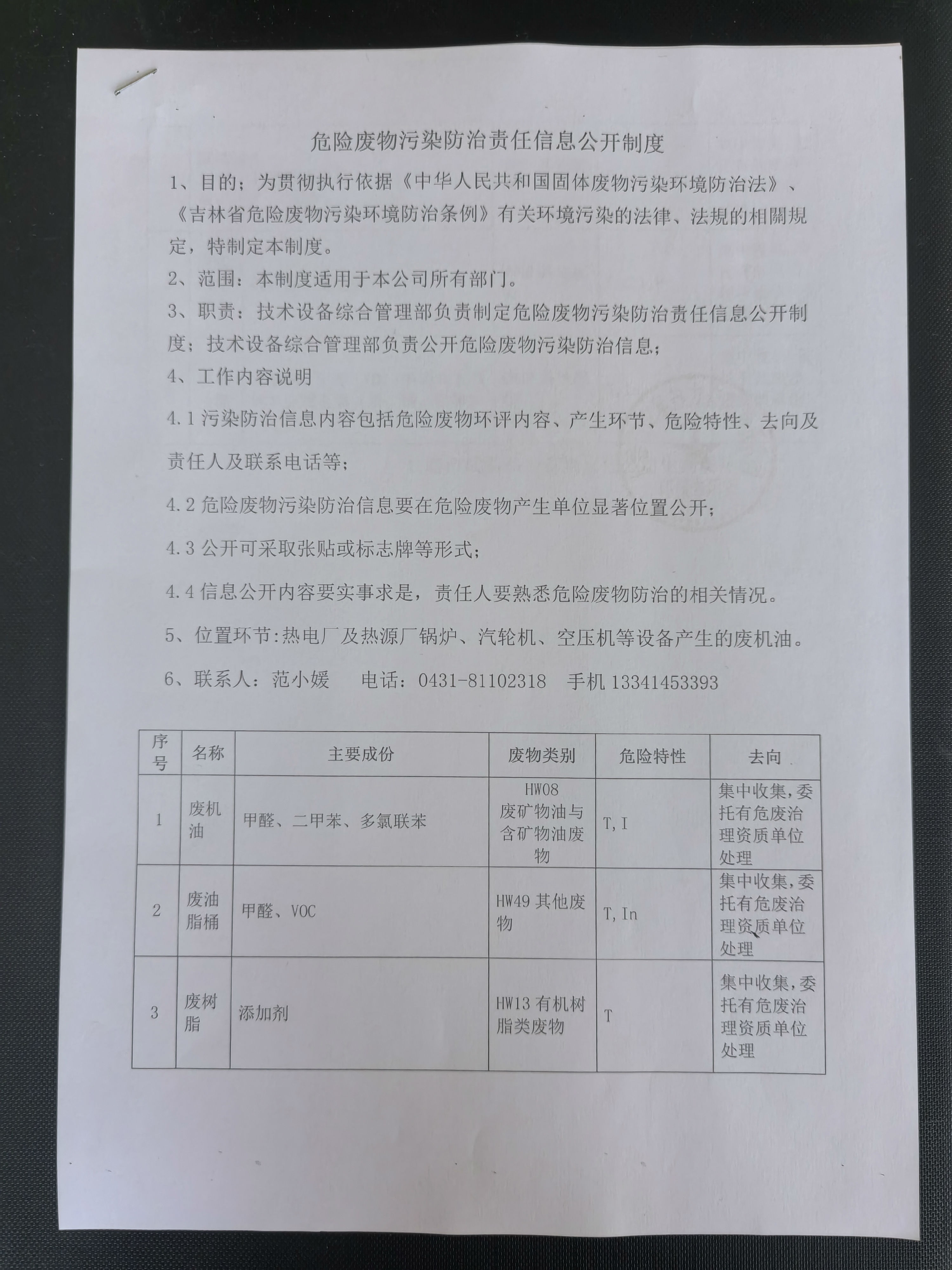 危险废物污染防治责任信息公开制度
